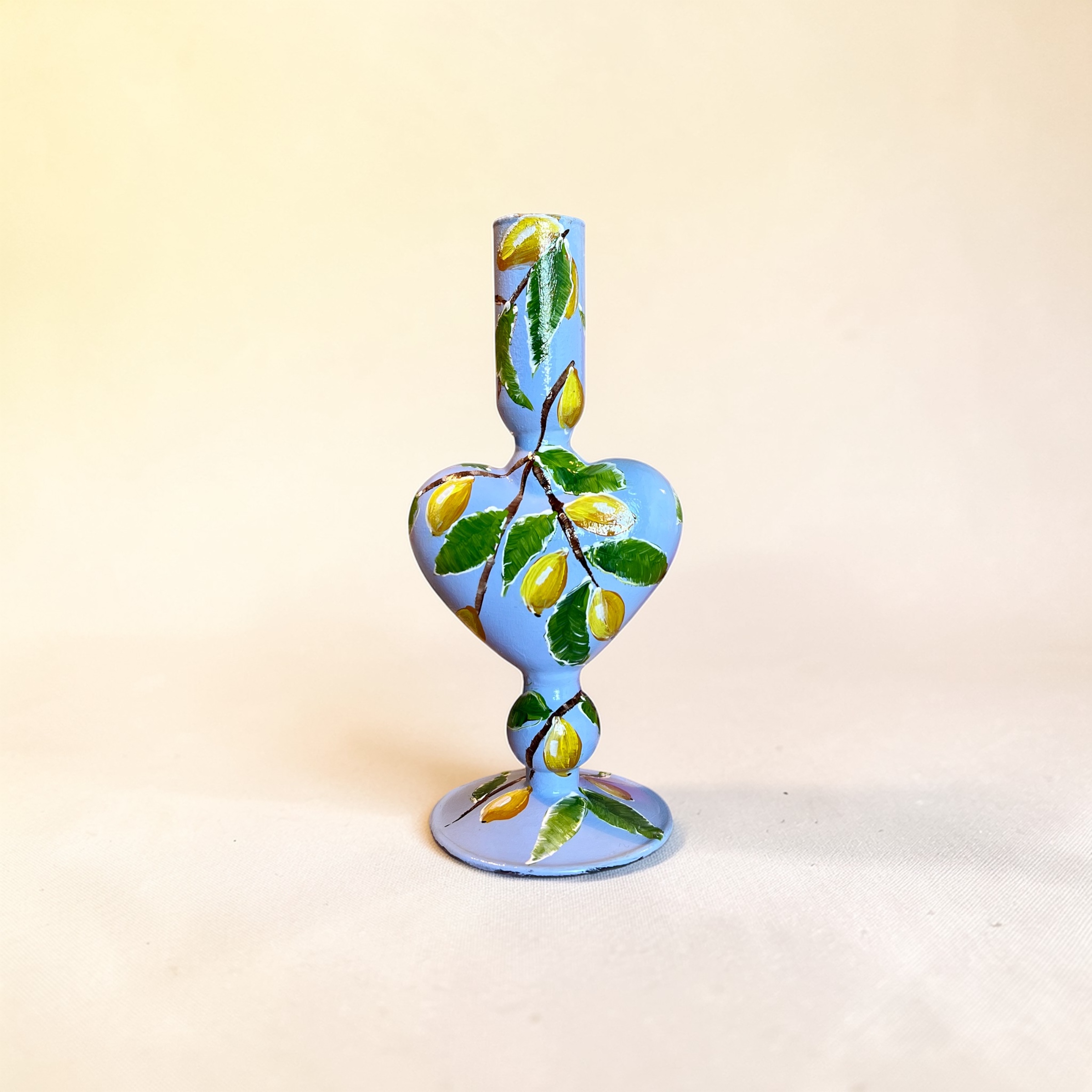Glazen handbeschilderde kandelaar.