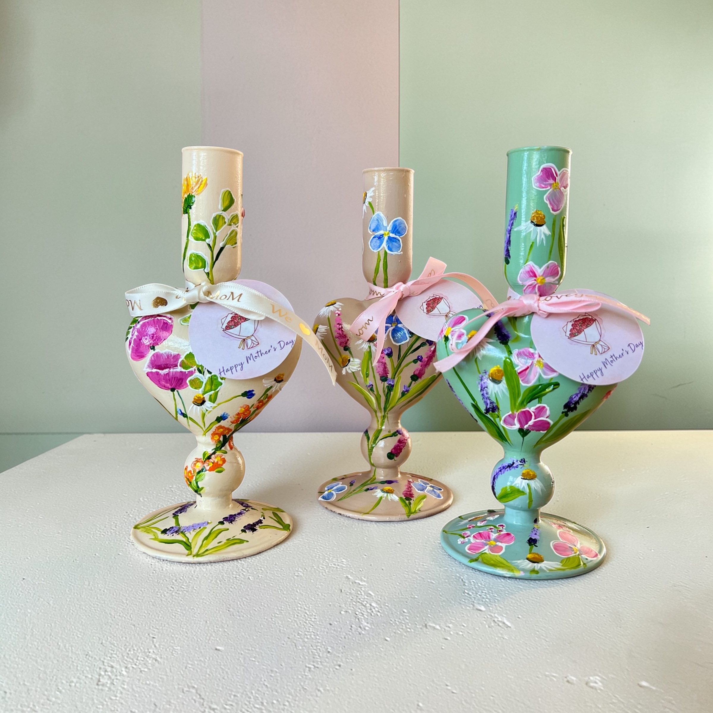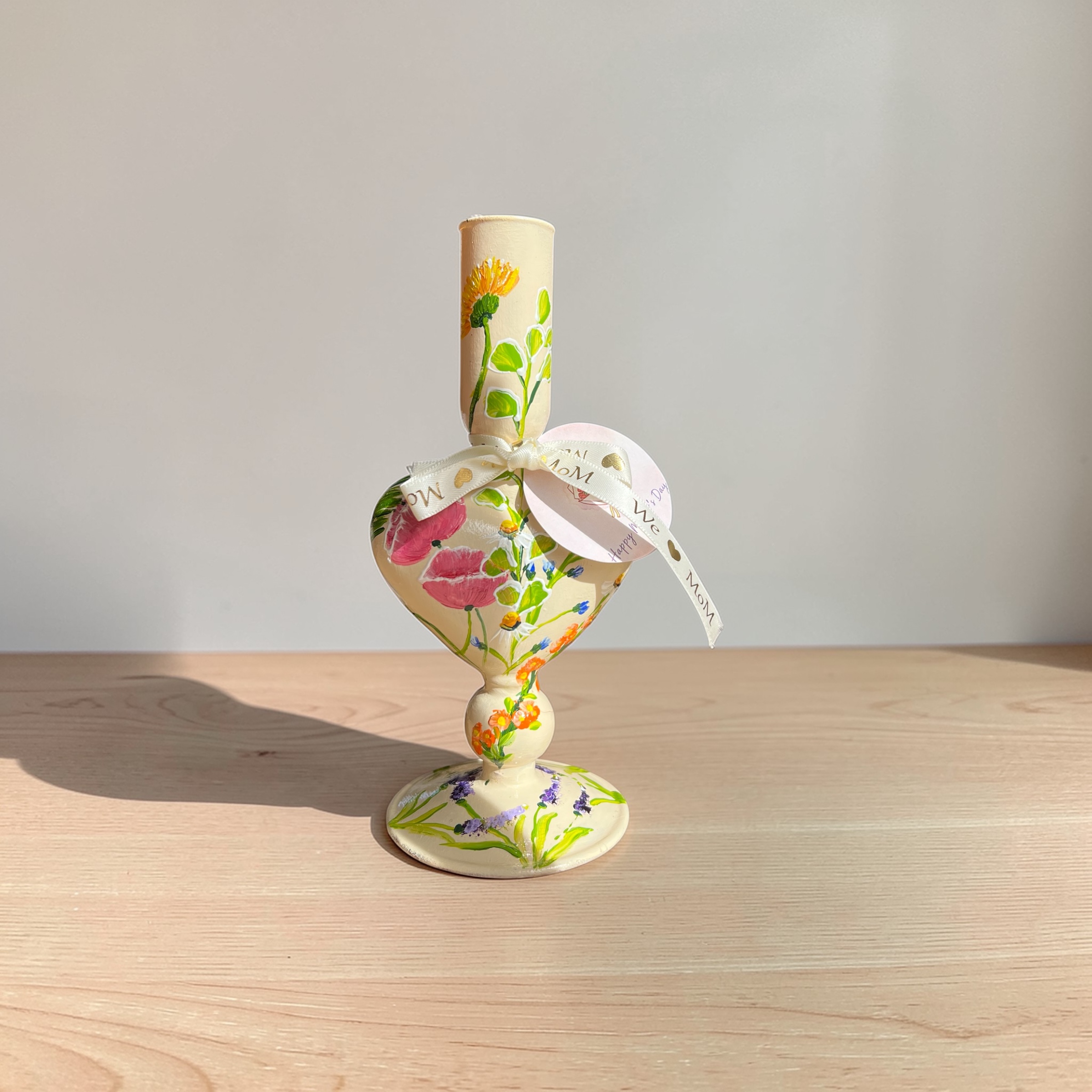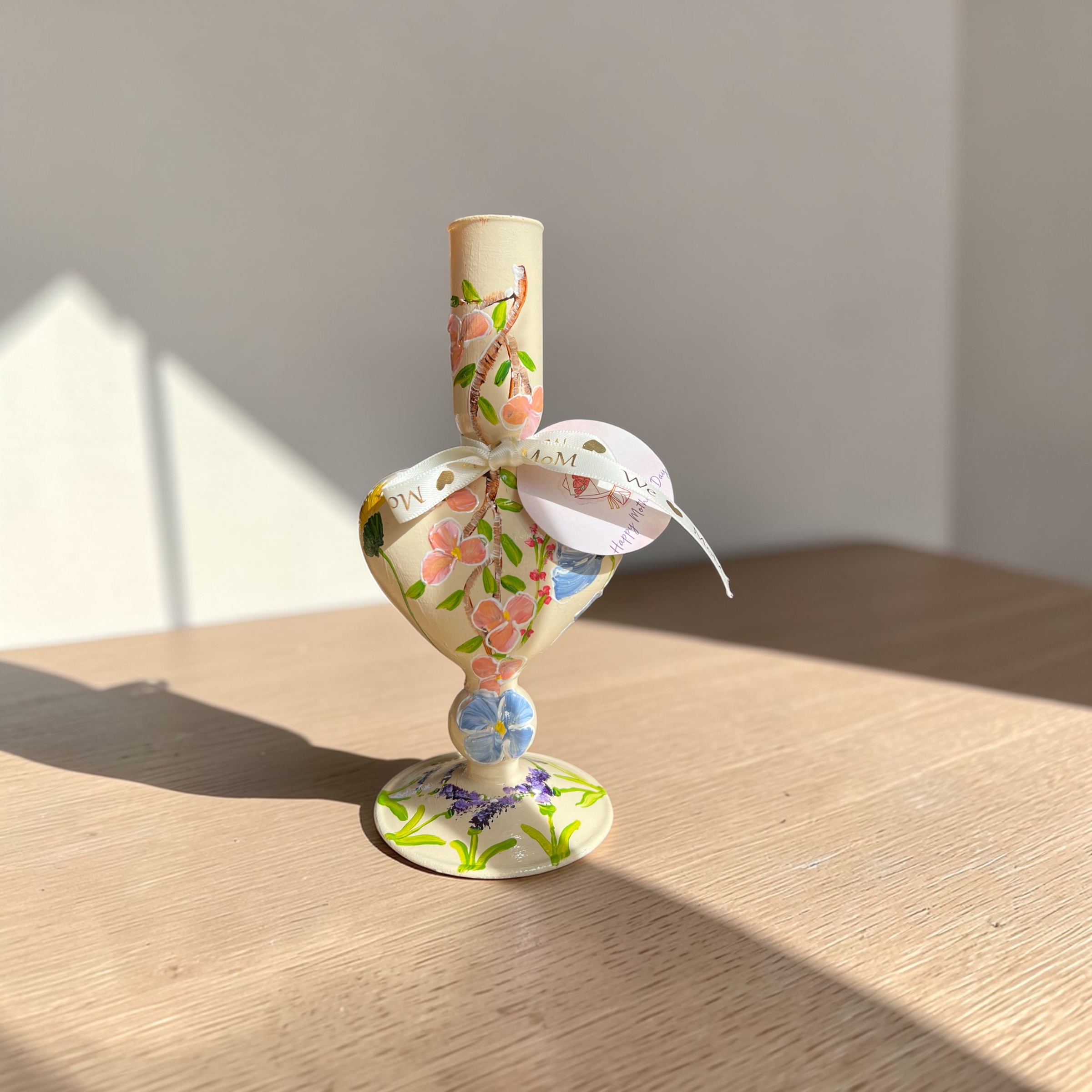Glazen handgeschilderde kandelaar.